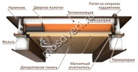 • внутренний многослойный наполнитель в двери и коробе в виде минеральной ваты, пенопласта и теплоотражающего (фольгированного) слоя, создающего эффект термоса.
